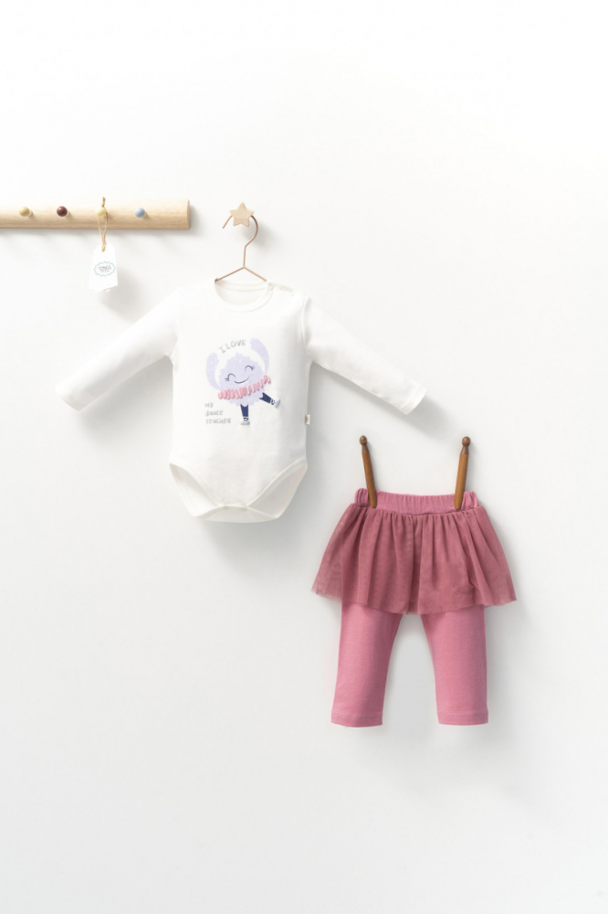 Set 2 piese cu body si pantalonasi cu tulle Tongs baby Monster Roz 12-18 Luni