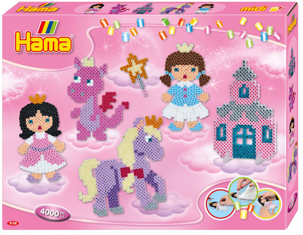 Set 2 plansete Povesti cu margele de calcat Hama Midi 4000 margele in cutie de cadou