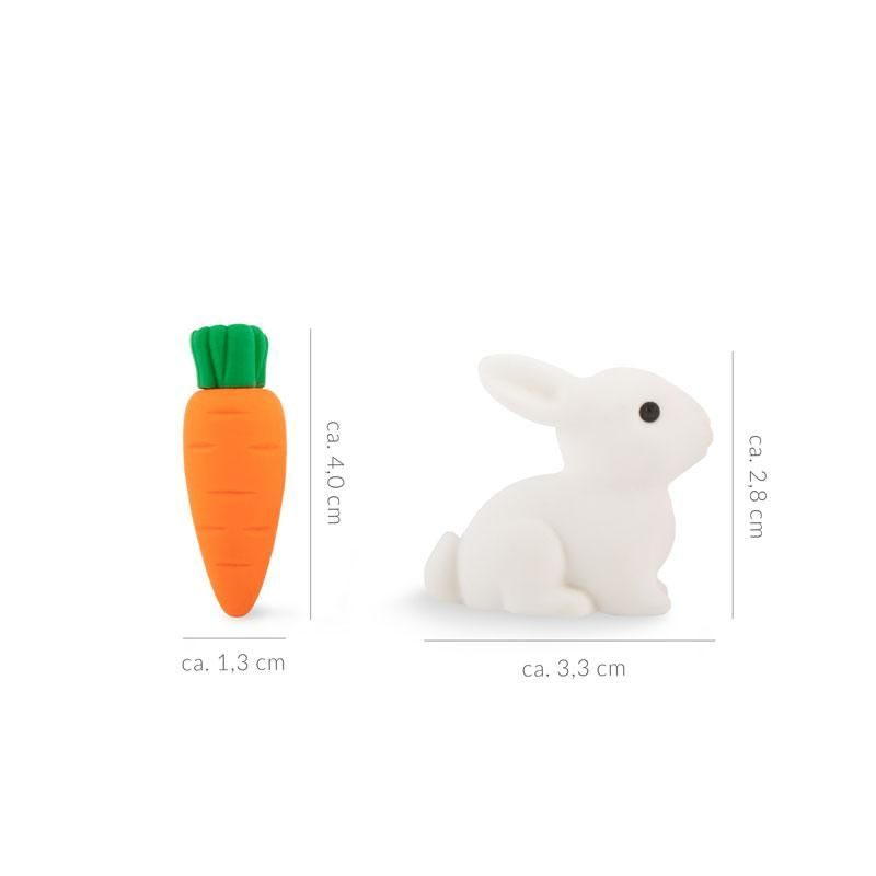 Adorabilii iepurasi isi iubesc morcovii mari, iar acest set unic de radiere in forma de iepuras cu morcov il va cuceri cu siguranta pe micutul tau!