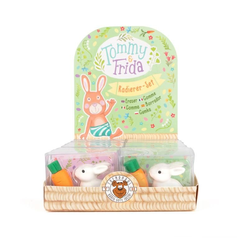 Set 2 radiere in forma de iepuras si morcov Frieda si Tommy verde