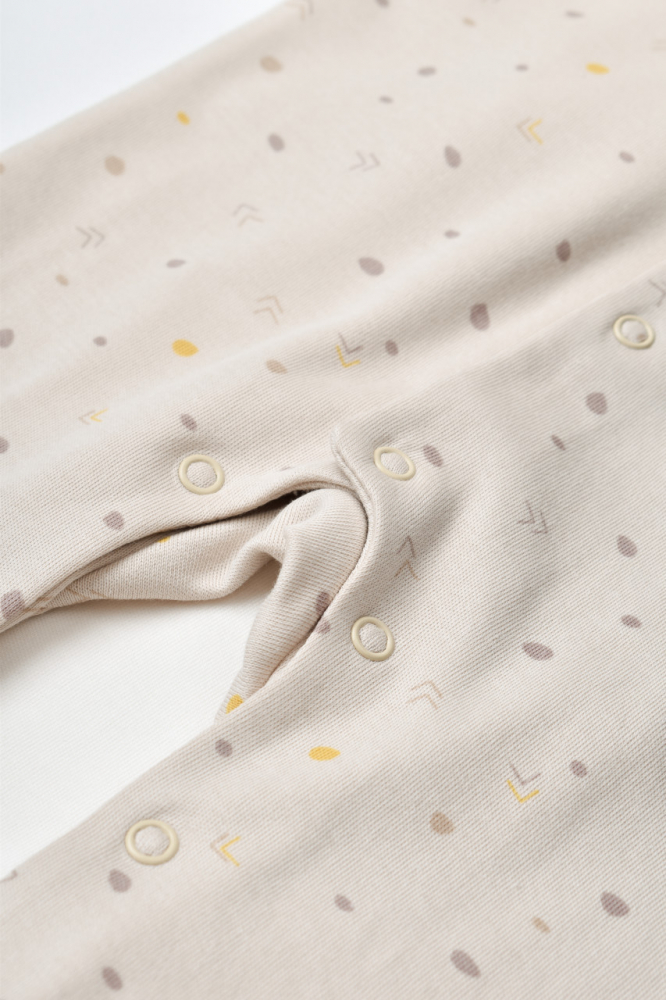 Set 2 salopete Baby Cosy cu maneca si panataloni lungi cu botosei 100% bumbac organic Crem cu buline 3-6 luni