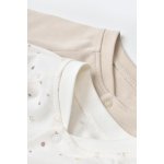 Set 2 salopete Baby Cosy cu maneca si panataloni lungi cu botosei 100% bumbac organic Ecru cu buline 3-6 Luni