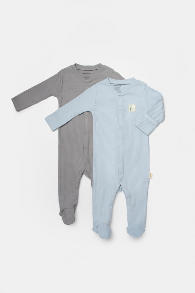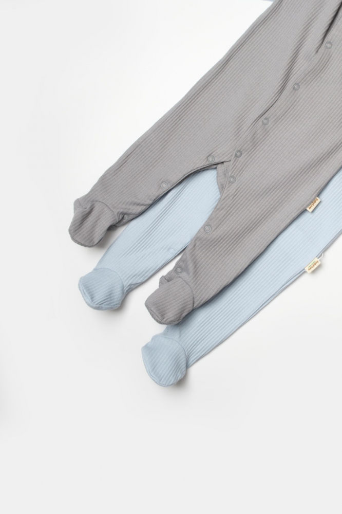 Set 2 salopete lungi Bamboo, blue, BabyCosy, 50% bumbac + 50% bambus, marime 3-6 Luni