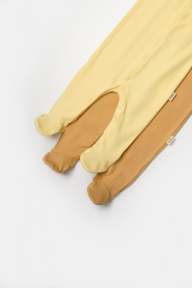 Set 2 salopete lungi Bamboo, galben, BabyCosy, 50% bumbac + 50% bambus, marime 0-3 Luni