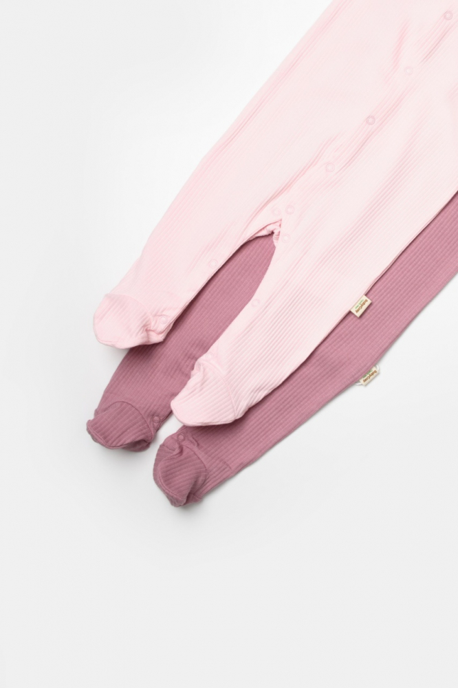 Set 2 salopete lungi Bamboo, roz, BabyCosy, 50% bumbac + 50% bambus, marime 3-6 Luni