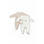 Set 2 salopete petrecute TeddyBear, 100% bumbac organic, BabyCosy, marime 3-6 Luni