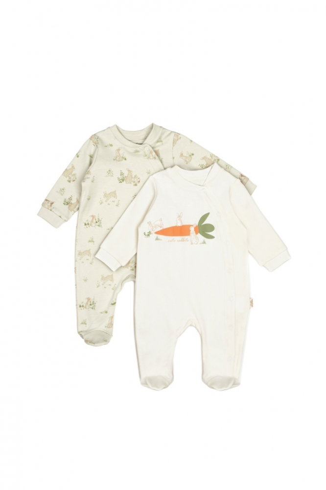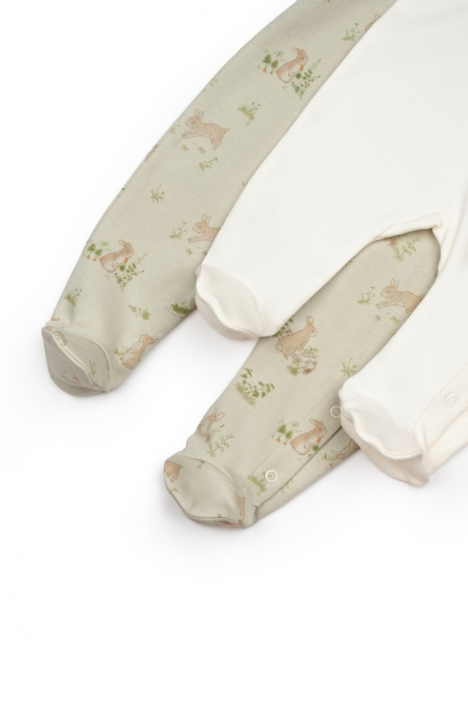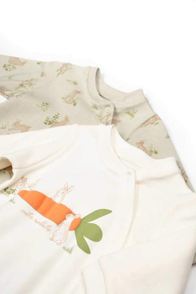 Set 2 salopete Rabbit, 100% bumbac organic, BabyCosy, marime 6-9 luni