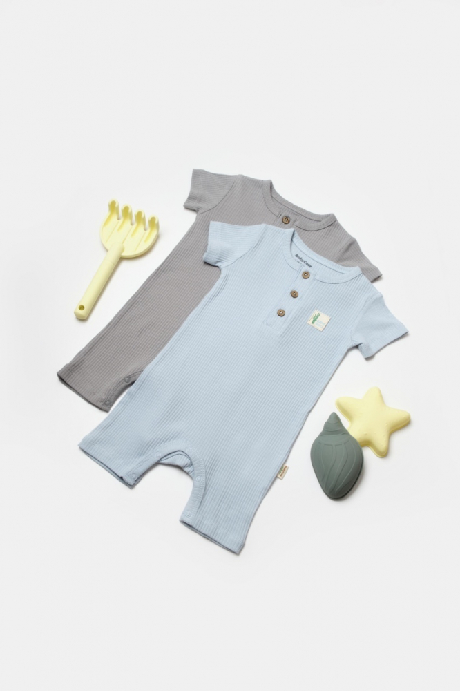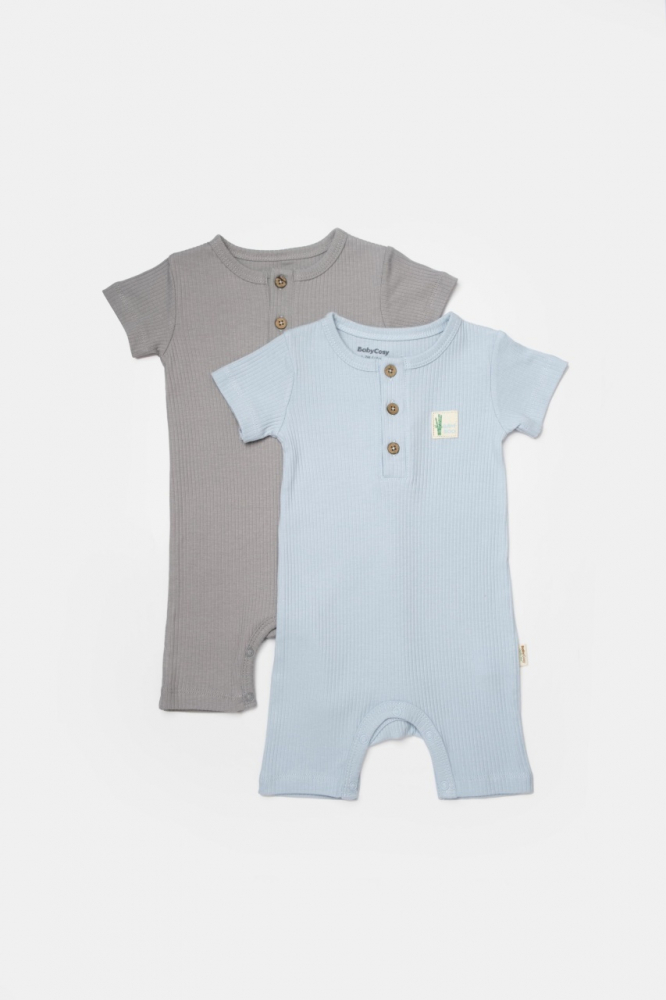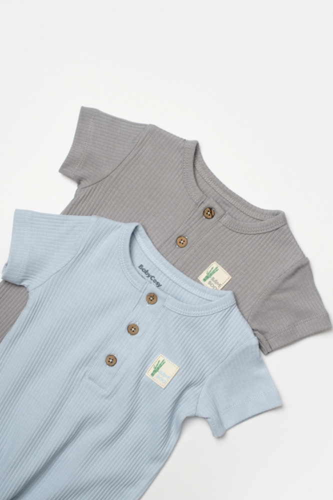 Set 2 salopete scurte Bamboo, blue, BabyCosy, 50% bumbac + 50% bambus, marime 3-6 Luni