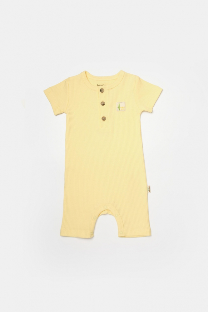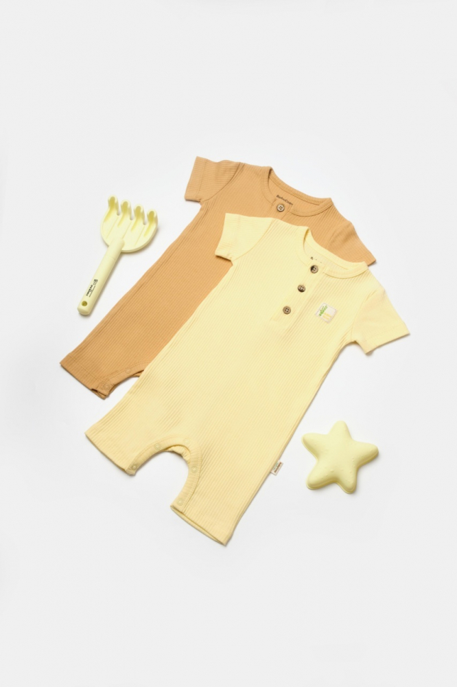 Set 2 salopete scurte Bamboo, galben, BabyCosy, 50% bumbac + 50% bambus, marime 12-18 Luni
