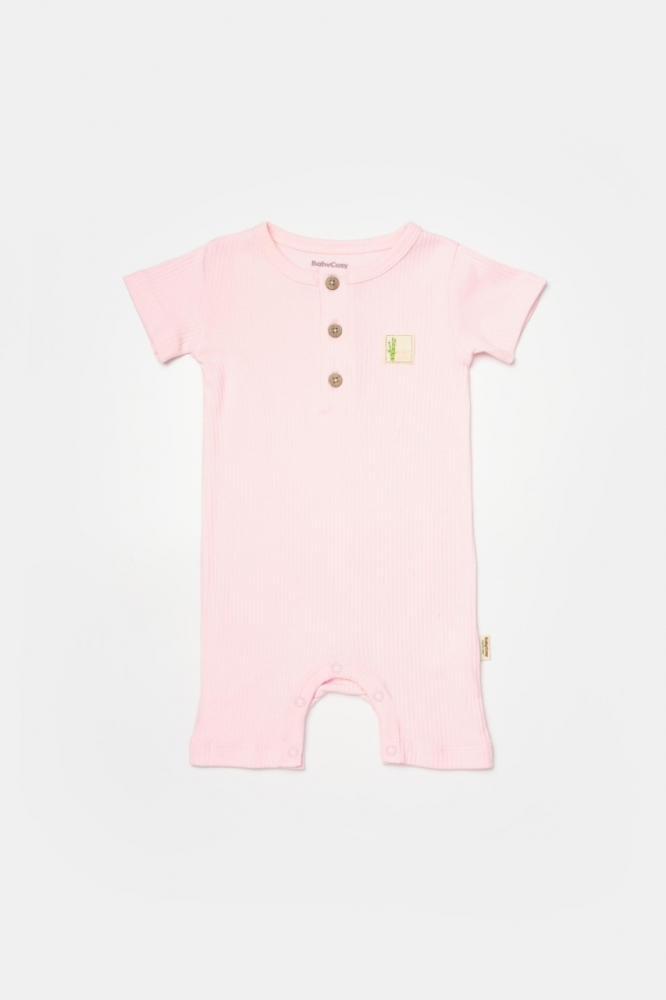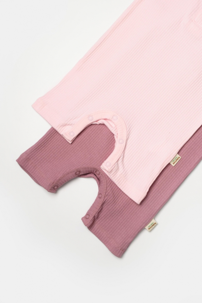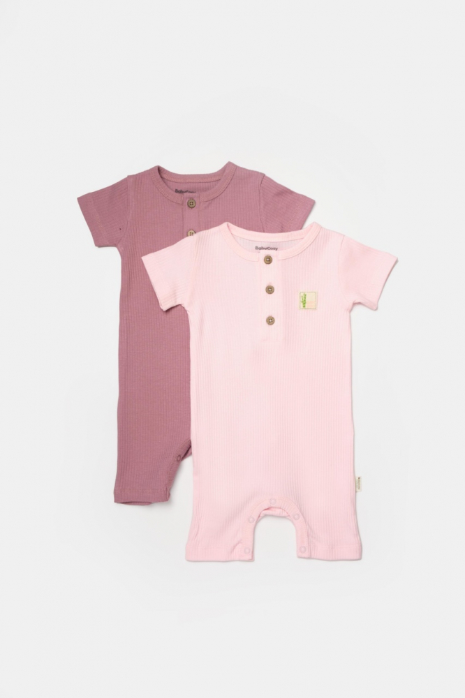 Set 2 salopete scurte Bamboo, roz, BabyCosy, 50% bumbac + 50% bambus, marime 18-24 Luni