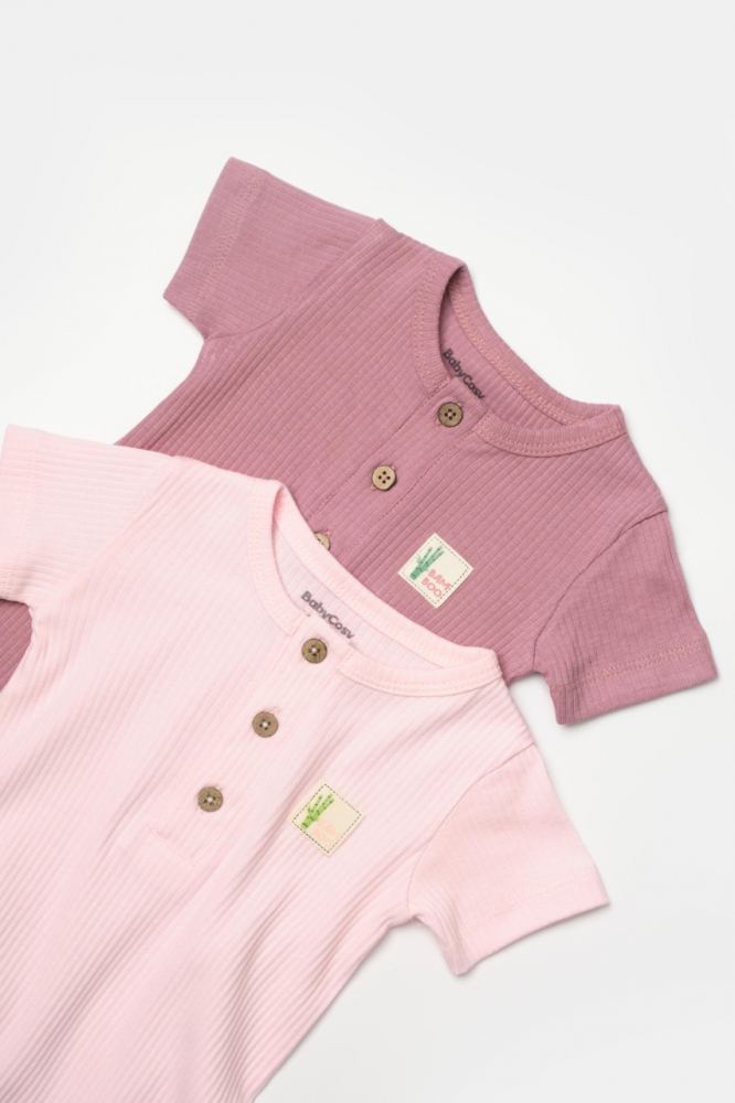 Set 2 salopete scurte Bamboo, roz, BabyCosy, 50% bumbac + 50% bambus, marime 6-9 luni