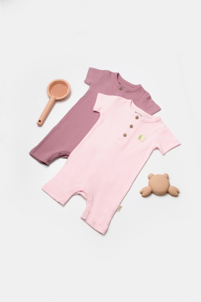 Set 2 salopete scurte Bamboo, roz, BabyCosy, 50% bumbac + 50% bambus, marime 9-12 luni