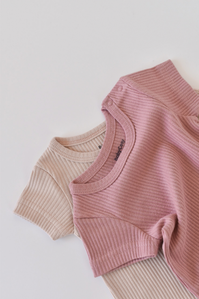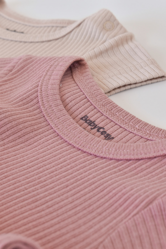 Set 2 salopetele BabyCosy cu maneca scurta Roz/ Blush marime 12-18 luni