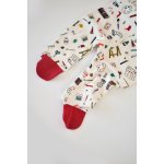 - Este realizat din bumbac organic 100% - material certificat GOTS, delicat cu pielea gingasa a a bebelusului. Printurile sunt cu vopseluri pe baza de apa si toate produsele sunt in concordanta cu standardele GOTS.