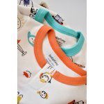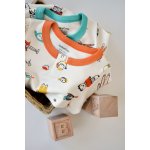- Este realizat din bumbac organic 100% - material certificat GOTS, delicat cu pielea gingasa a a bebelusului. Printurile sunt cu vopseluri pe baza de apa si toate produsele sunt in concordanta cu standardele GOTS.