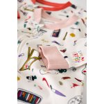 - Este realizat din bumbac organic 100% - material certificat GOTS, delicat cu pielea gingasa a a bebelusului. Printurile sunt cu vopseluri pe baza de apa si toate produsele sunt in concordanta cu standardele GOTS.