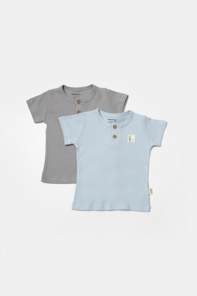 Set 2 tricouri Bamboo, blue, BabyCosy, 50% bumbac + 50% bambus, marime 18-24 Luni