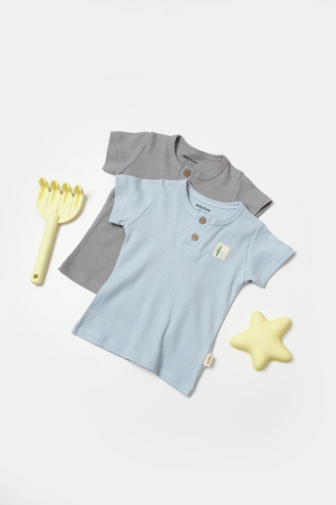 Set 2 tricouri Bamboo, blue, BabyCosy, 50% bumbac + 50% bambus, marime 6-9 luni