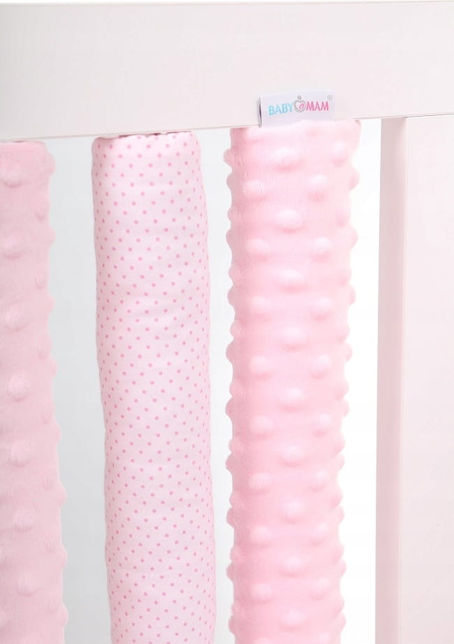 Set 20 de protectii individuale pentru patut copii BabyMam o parte 100% bumbac si cealalta parte din minky moale, fixare cu benzi velcro, Pink