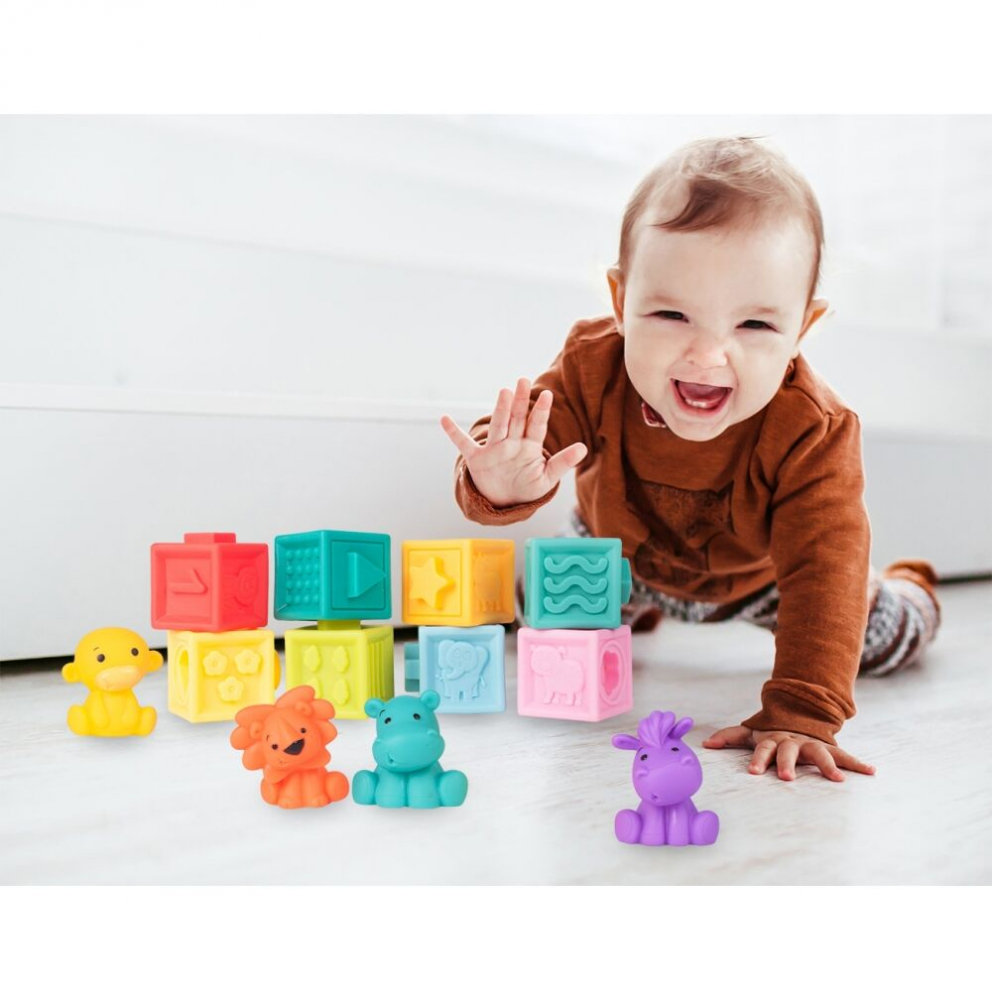 * Cu forme, culori si texturi variate, aceste blocuri ii vor ajuta sa invete despre litere, numere, animale si sa-si dezvolte abilitatile motorii si cognitive.