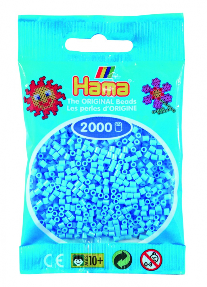 Conține: aproximativ 2.000 de bucăți mărgele HAMA MINI albastru pastel, împachetate într-o sacoșă de plastic transparent și colorat.