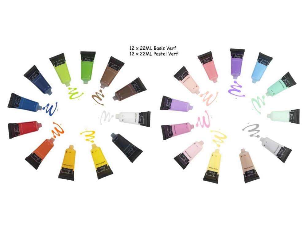 Set 24 culori acrilice pastel si de baza Fine Art Nassau