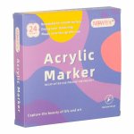* Un set de 24 de markere acrilice iti ofera o multime de culori, inclusiv markere metalice aurii si argintii, plus un marker negru esential.