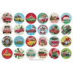 Calendar de Advent Volkswagen , 24 puzzle-uri, 50 piese un calendar de Advent oficial licentiat cu 24 de puzzle-uri rotunde, fiecare cu 50 de piese, ilustrand vehicule clasice Volkswagen decorate festiv.