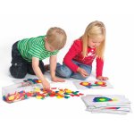 Acest set conține 250 de forme geometrice fabricate din plastic masiv, cu grosimea de 5 mm, rezistente la utilizare frecventă în clasă sau acasă. Piesele sunt colorate în nuanțe clasice și au dimensiuni potrivite pentru mâinile copiilor mici.