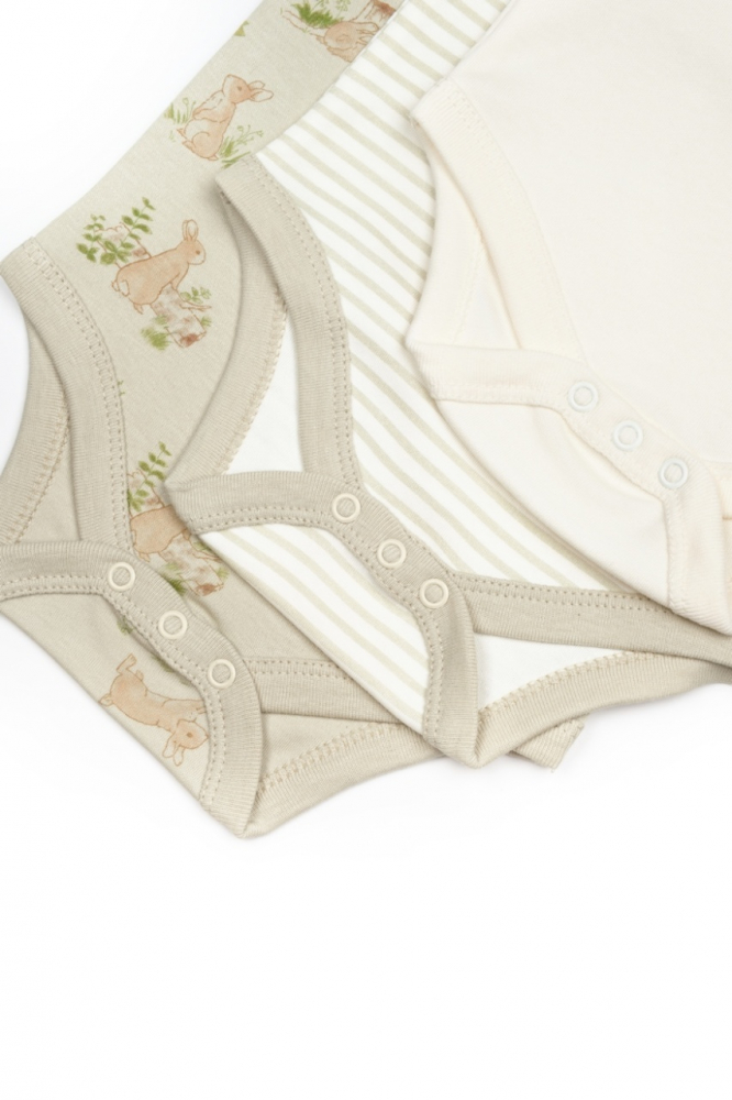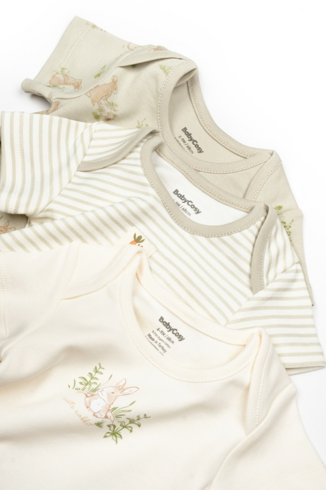 Set 3 body Rabbit, BabyCosy, 100% bumbac, marime 3-6 luni