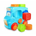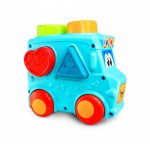 • Un vehicul simpatic si colorat, echipat cu decupaje speciale pentru sortarea formelor geometrice.