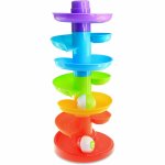 • Un joc turnulet cu bile, la care copilul pune bilele in varf si le urmareste cum coboara pe traseu