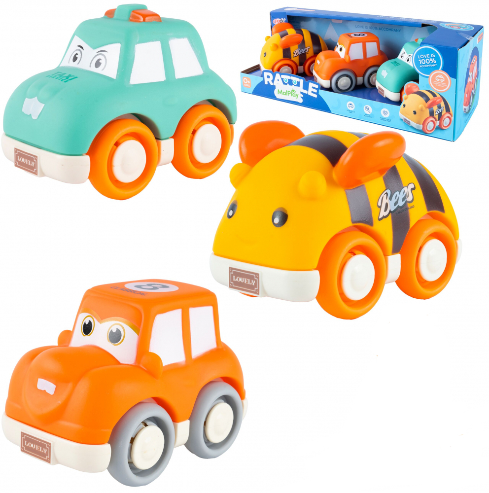 Set 3 masinute senzoriale pentru copii multicolor Rattle