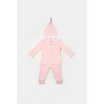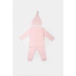 Set 3 piese bluza, pantaloni si caciulita Bamboo, roz, BabyCosy, 50% bumbac + 50 % bambus, marimea 12-18 Luni
