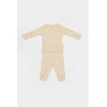 Set 3 piese bluza, pantaloni si caciulita Printed, BabyCosy, 50% modal + 50% bumbac organic, Stone, marime 12-18 Luni