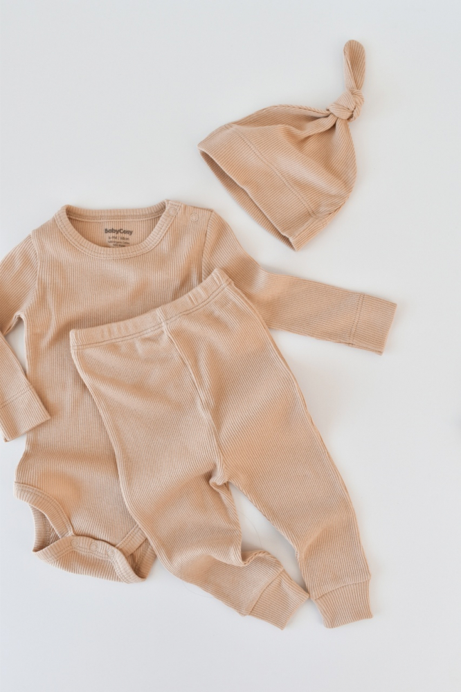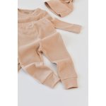 Set 3 piese body cu maneca lunga, pantaloni lungi si caciulita din bumbac organic si modal, Somon, BabyCosy, marime 12-18 Luni