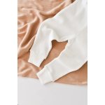 Set 3 piese body cu maneca lunga pantaloni si caciulita din bumbac organic si modal Ecru 9-12 luni