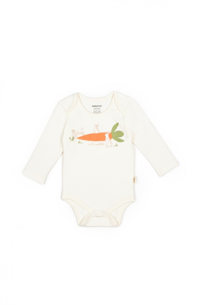 2. Body-ul cu maneci lungi, din 100% bumbac organic, se inchide cu capse intre picioruse