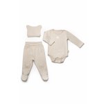 Set 3 piese body, pantaloni si caciulita TeddyBear, BabyCosy, bumbac organic 50% - 50% modal, marime 0-3 Luni
