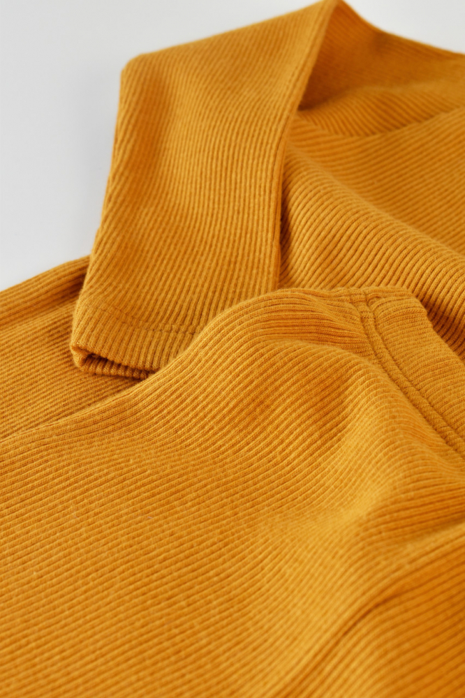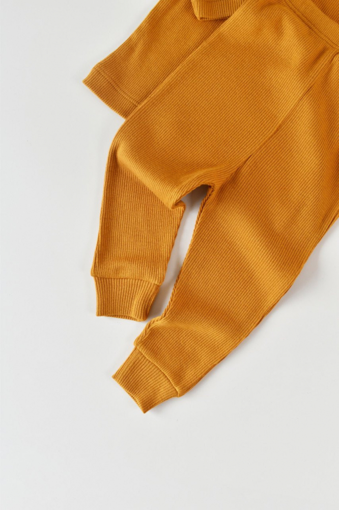 Set 3 piese cu bluzita pantaloni si caciulita din bumbac organic si modal Mustar 12-18 Luni