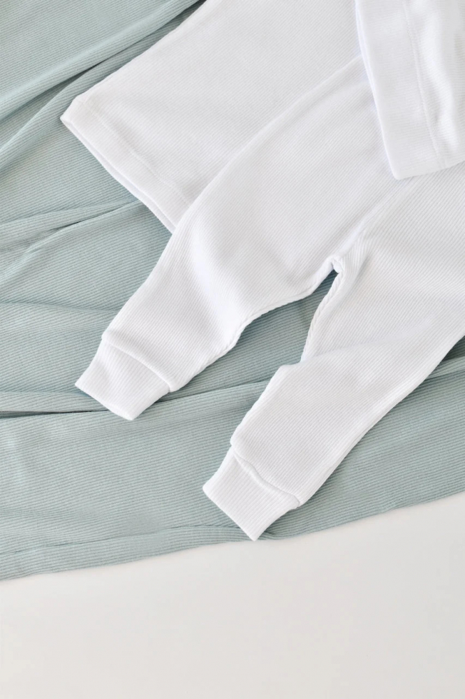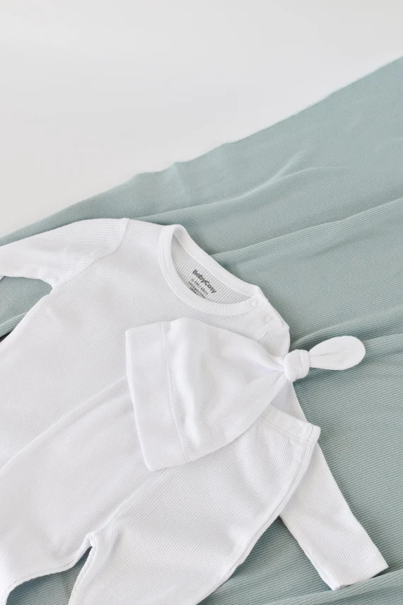 Set 3 piese cu bluzita pantaloni si caciulita din bumbac organic si modal Alb 9-12 luni