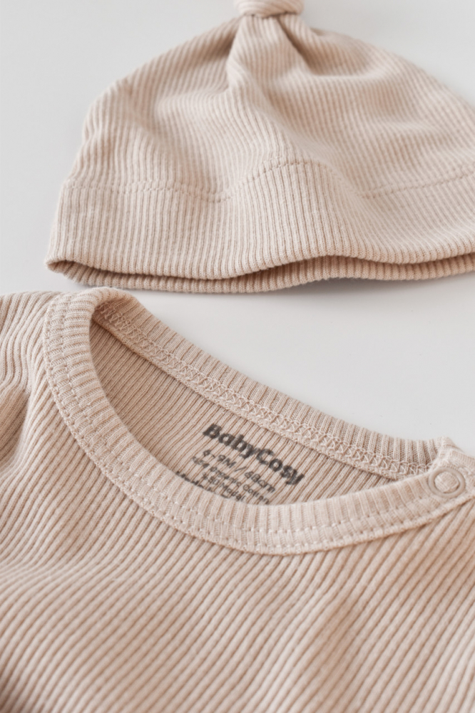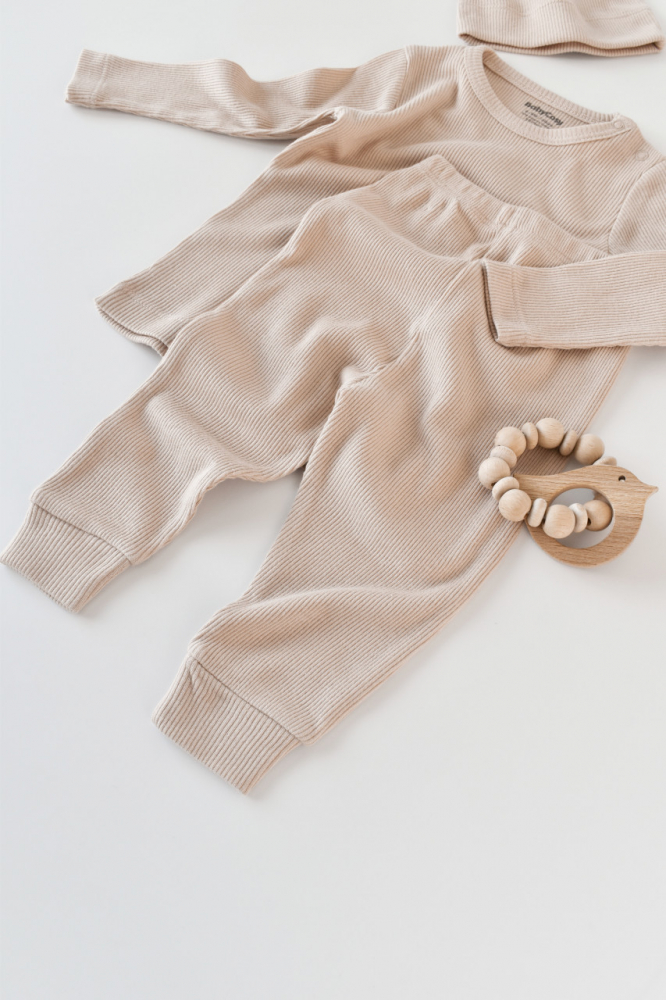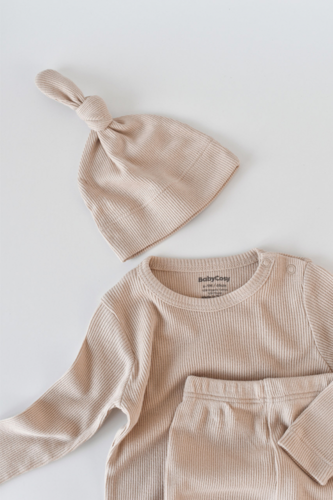 Set 3 piese cu bluzita pantaloni si caciulita din bumbac organic si modal Blush 18-24 Luni