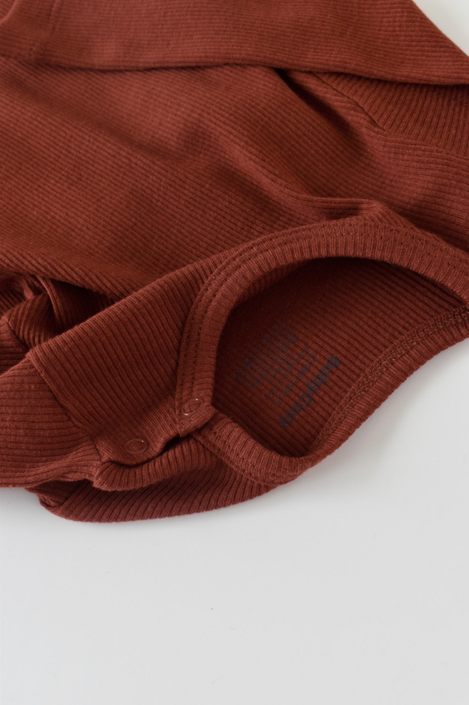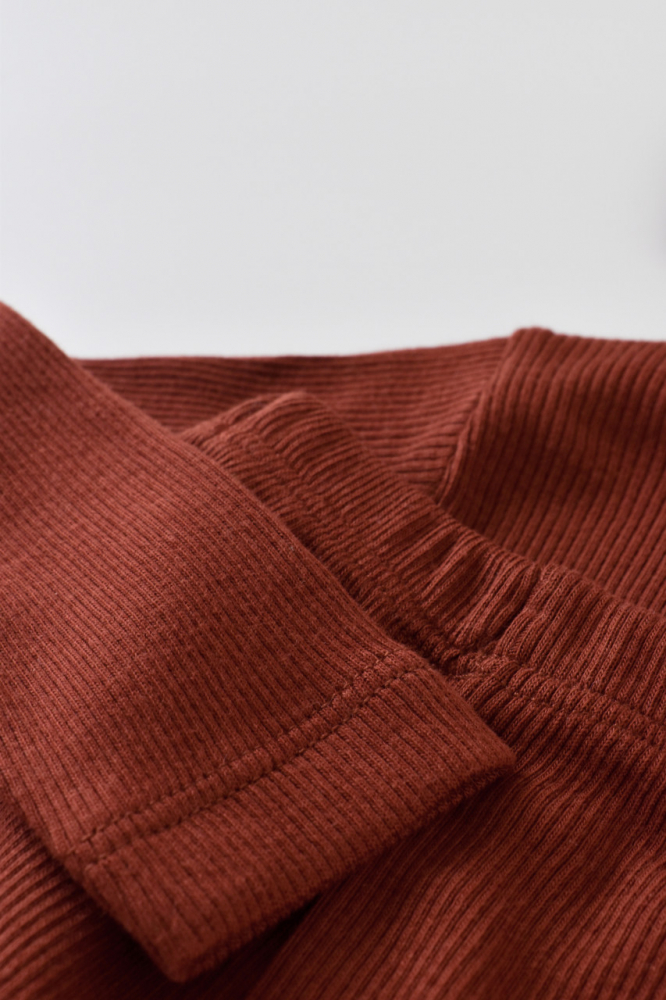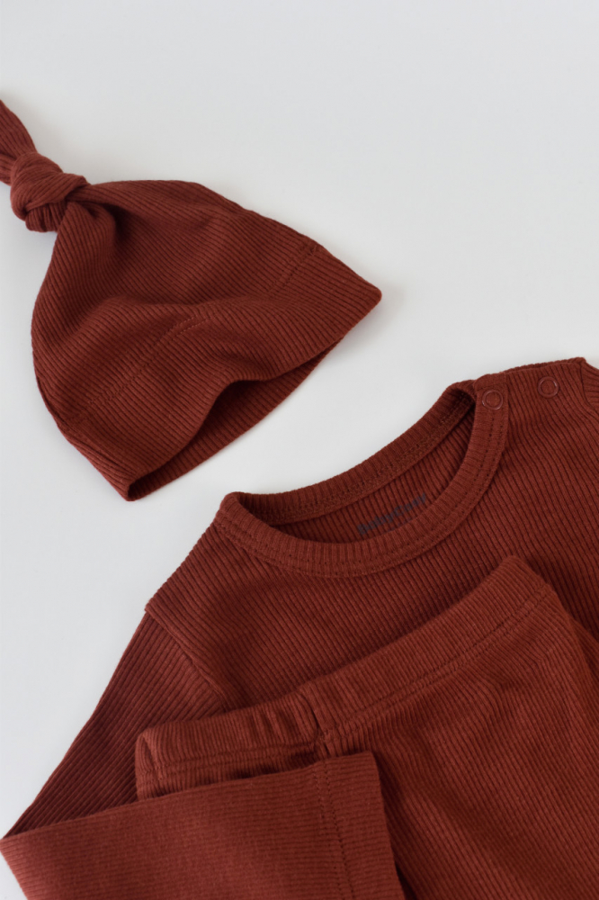 Set 3 piese cu bluzita pantaloni si caciulita din bumbac organic si modal Caramiziu 12-18 Luni