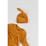 Set 3 piese cu bluzita pantaloni si caciulita din bumbac organic si modal Mustar 6-9 luni