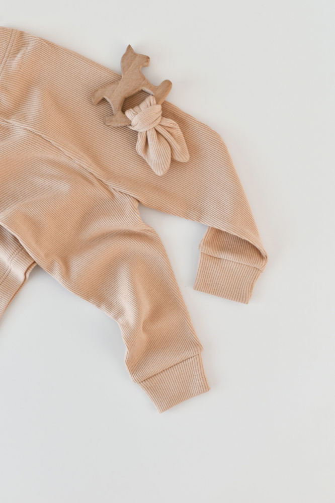 Set 3 piese cu bluzita pantaloni si caciulita din bumbac organic si modal Somon 18-24 Luni