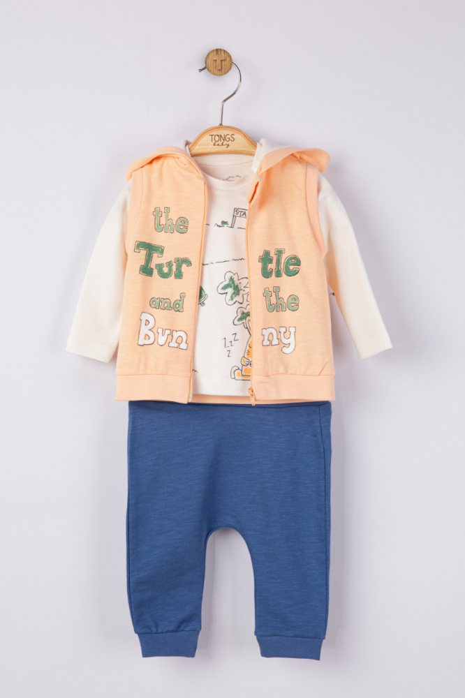 Set 3 piese pantaloni bluzita si vestuta pentru bebelusi Tongs baby Somon 12-18 Luni