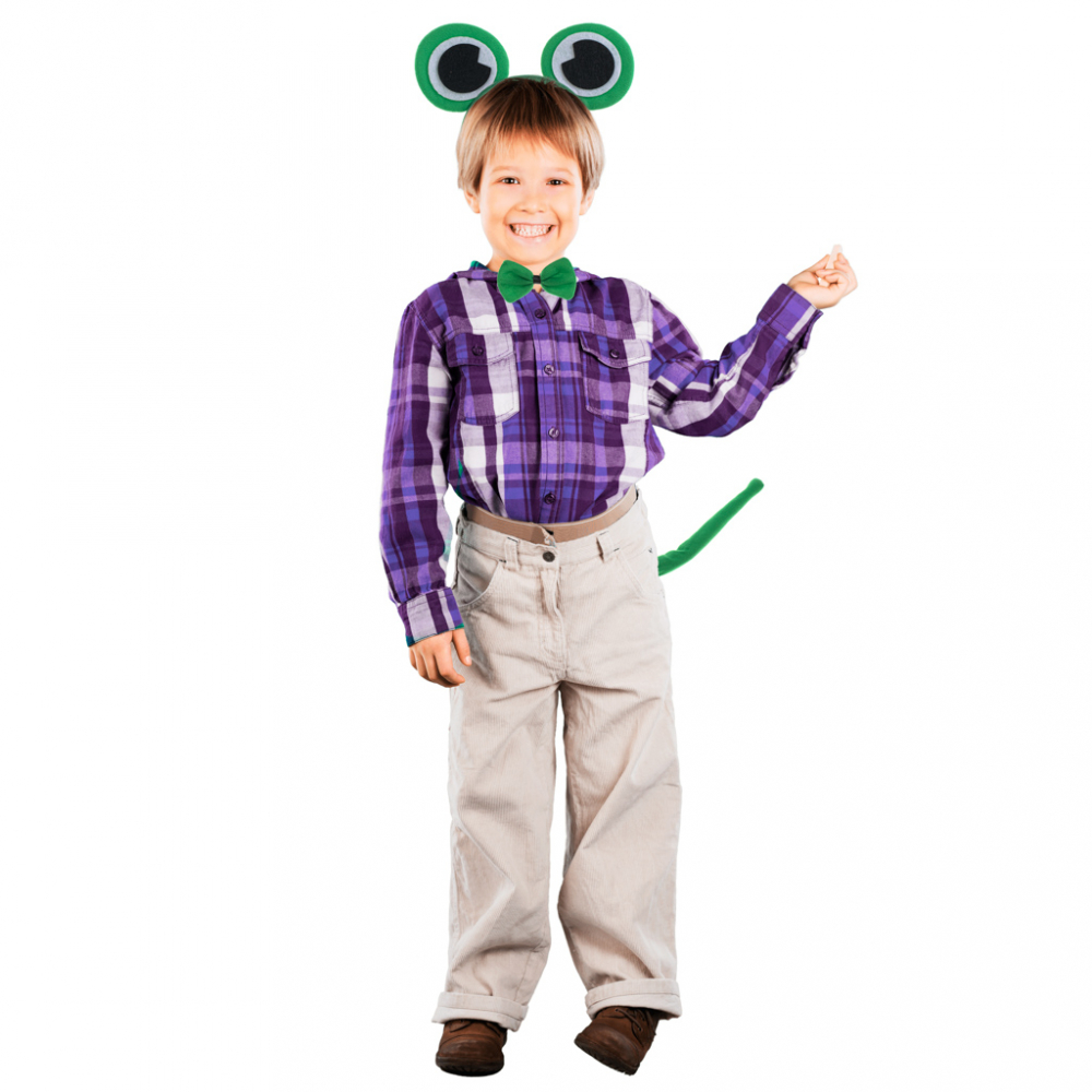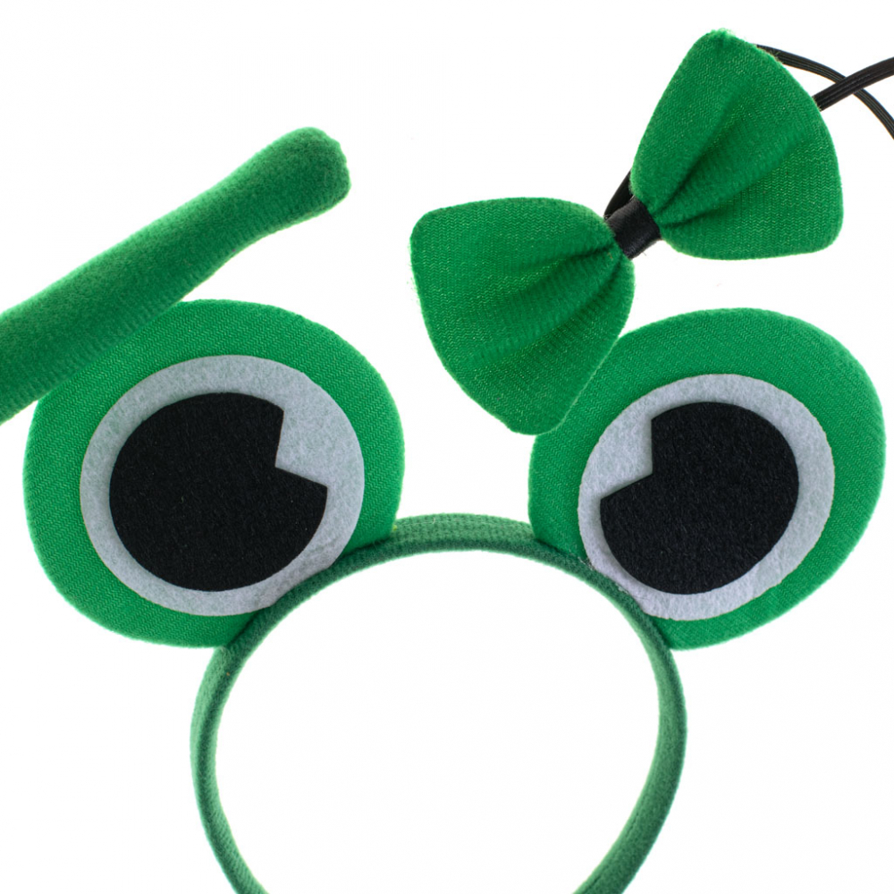 Setul include o bentita verde cu ochi, un papion verde si o coada verde. T oti cei de la petrecere vor sti cu siguranta in cine este imbracat micutul tau - o broasca draguta!