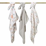 Scutecele din bambus se pot transforma intr-o patura de infasat, patura usoara pentru acoperit, cearsaf, prosop sau chiar jucarie favorita.
