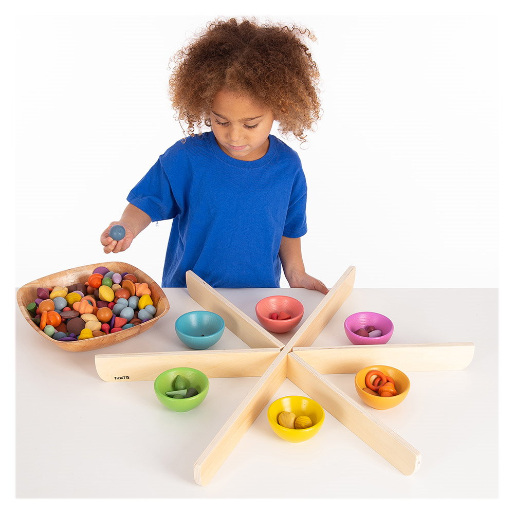 - Separatoarele TickiT au fost proiectate pentru a forma un cerc de sortare cu sase sectiuni in care copiii isi pot aranja si sorta micile comori si piese libere.