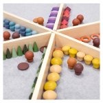 - Separatoarele din lemn le vor permite micilor exploratori sa isi sorteze si aranjeze comorile si obiectele lor speciale in timpul jocului senzorial si de descoperire.